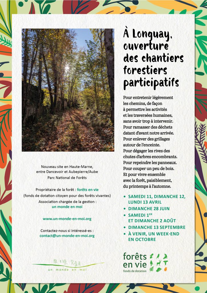Pour entretenir légèrement des chemins, de façon à permettre aux activités & traversées humaines d’avoir lieu, sans trop intervenir. Pour ramasser des déchets datant d’avant notre arrivée. Pour enlever des grillages autour de l’enceinte. Pour dégager les rives des chutes d’arbres encombrants. Pour repeindre les panneaux. Pour couper un peu de bois. Et pour vivre ensemble avec la forêt, paisiblement, du printemps à l’automne.